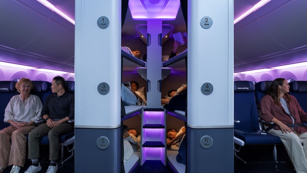 So far, however, it is also a limited offer at Air New Zealand. Initially, only selected aircraft, specifically some Boeing 787-9 Dreamliners, will be equipped. The Skynests are located in their own area between Economy and Premium Economy.